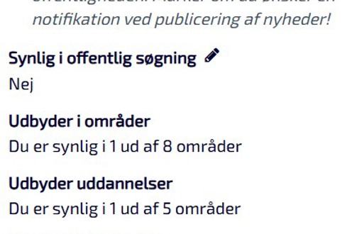 Her kan du redigere, om det er dig personligt eller evt. dit firma eller en arbejdsplads, der skal fremgå af søgningen. Du kan også markere, hvis du ikke ønsker at frem af søgningen.